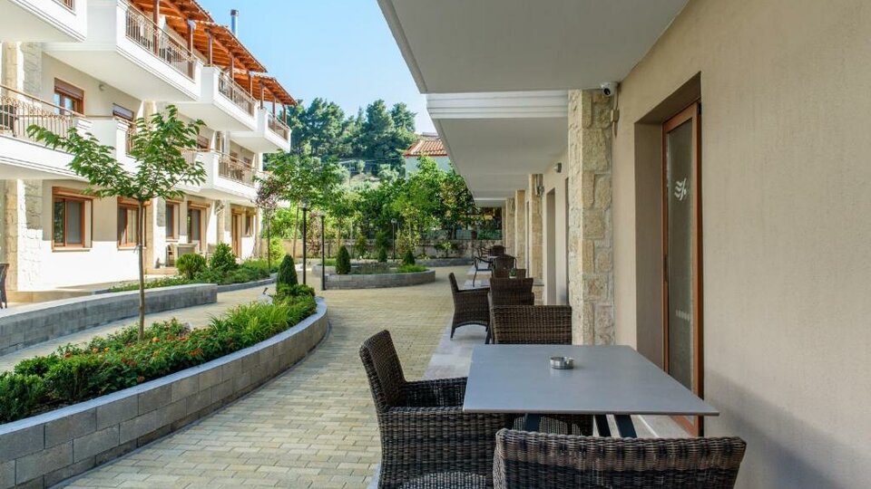 Apanemia by Flegra Hotels е сосема нов комплекс на апартмани, изграден во 2017 година, сместен во стариот центар на селото Пефкохори, на полуостровот Касандра. Оддалечен е само 50м од трговскиот центар Пефкохори, 150м од автобуската станица и 100км од аеродромот Македонија во Солун. Апартманите во Апанемија се состојат од две посебни соби, една дневна соба со две единечни софа кревети и кауч и една спална соба со брачен кревет. Сите имаат комплетно опремена кујна во дневната соба, бања со туш и балкон или тераса. Тие можат да примат до 5 лица