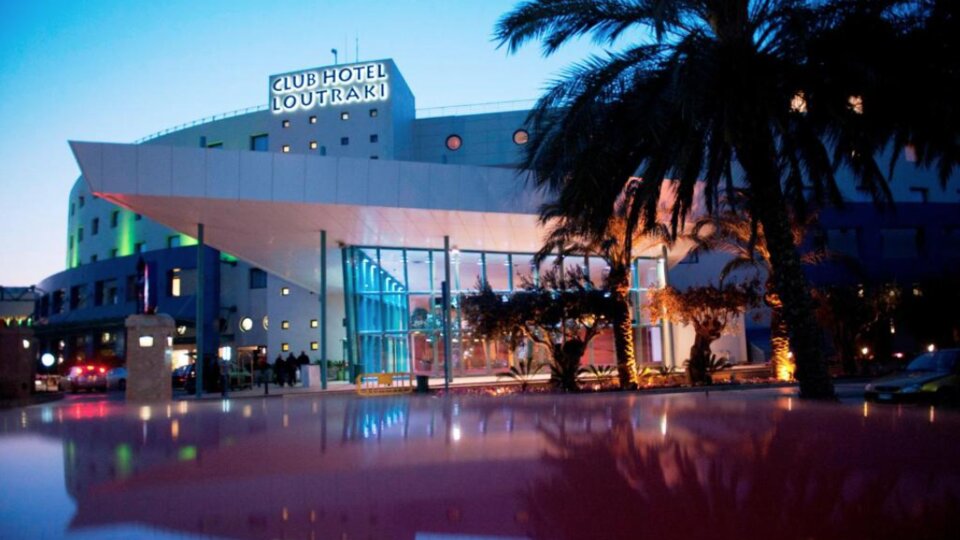 Лежи на периферијата на космополитскиот бањски град Лутраки, покрај познатиот канал Коринт и блиску до археолошките локалитети Коринт, Микена и Епидаурус, ве очекува цел свет на забава. Луксузот е присутен каде и да погледнете. Добро дизајнираното лоби со модерен мебел - некои од нив од Филип Старк; удобните соби со сите удобности на вистински 5 ѕвезди; 5-те ресторани кои служат гурманска храна која се движи од грчка и медитеранска до морска храна и суши; велнес центарот (спа) со природна дневна светлина се некои од објектите кои дефинитивно ќе обезбедат пријатен престој или за одмор или за деловен престој. Клуб Хотел Лутраки е единствениот имот во областа со најсовремен повеќеслоен конференциски центар. 5-те меѓусебно поврзани соби за состаноци лесно можат да бидат домаќини на конференција до 900 делегати.