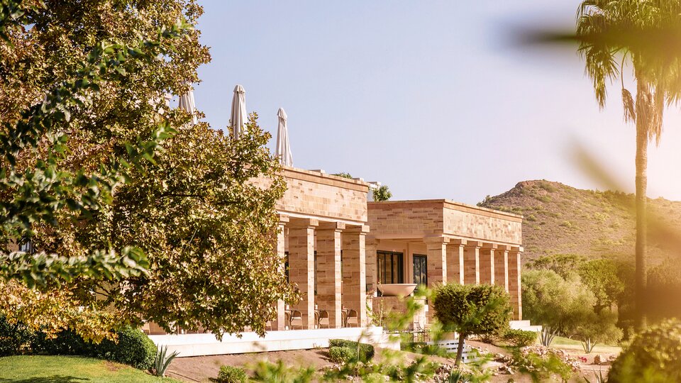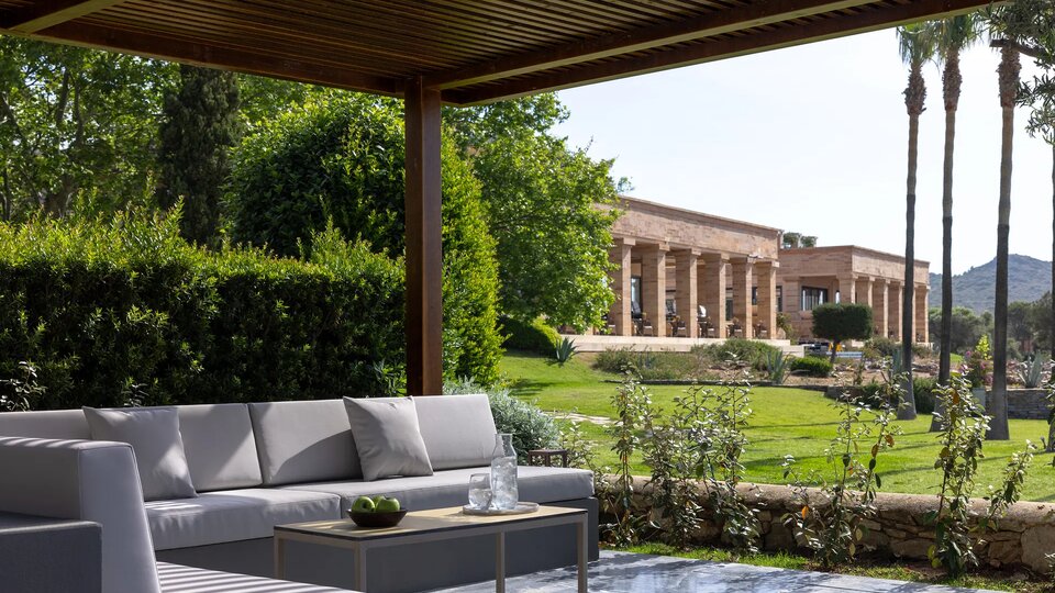 Овде, под импозантниот храм на Посејдон, примамливо светилиште со импресивни дорски столбови, се издигнуваат приватни вили покрај засенчени патеки поплочени со камен, врамени со маслинови дрвја и борови. Ова е Cape Sounio Grecotel Exclusive Resort. Ова е место на магија, каде што започнува Егејот и каде историјата го издржува тестот на времето. Мирисните борови кои се наведнуваат над приватните базени чии води одразуваат блескаво небо го зголемуваат чувството на задоволство и мир. Elixir Spa Retreat, прекрасен комплекс на локација на врвот на ридот е сместен во 5.000м2 уредени градини и шума. Амфитеатрално распоредени околу главниот базен, бунгаловите со теракота боја се вклопуваат во недопрениот пејзаж. Внатре, овие ексклузивни гостински соби се украсени во палета инспирирана од славниот амбиент. Вратите и масите со извртена бронза, обработени со нежна кожа на снежна риба од Индискиот Океан, ја влеваат недооценената елеганција на одморалиштето со допир на егзотичното. Митскиот рт на Грција, каде чудата на античка Грција го прегрнуваат славното море, привлекувајќи го кон космополитското крајбрежје прошарано со раскошни вили. Ова е Кејп Сунио; не само одморалиште: тоа е искуство.