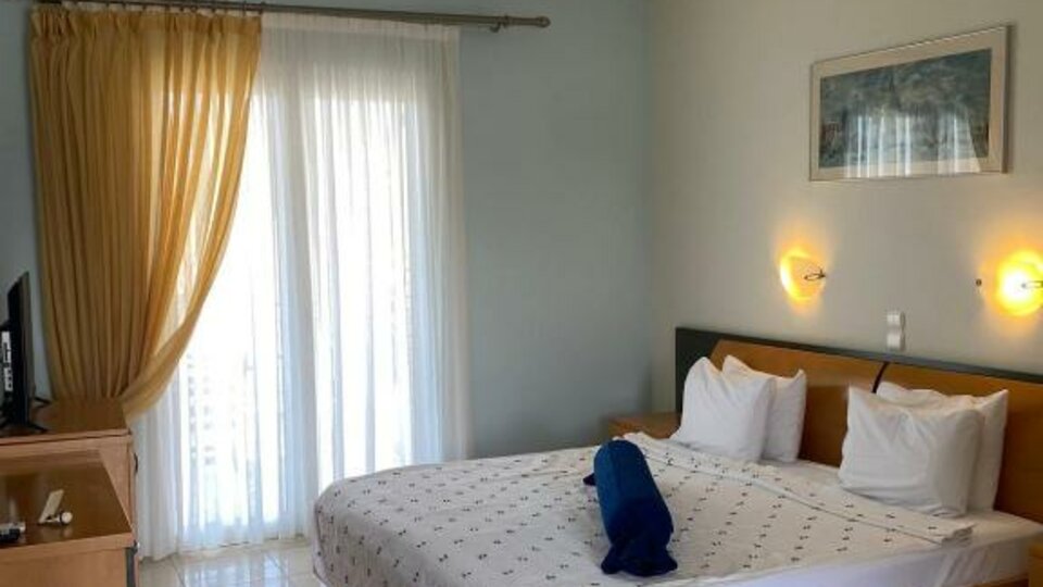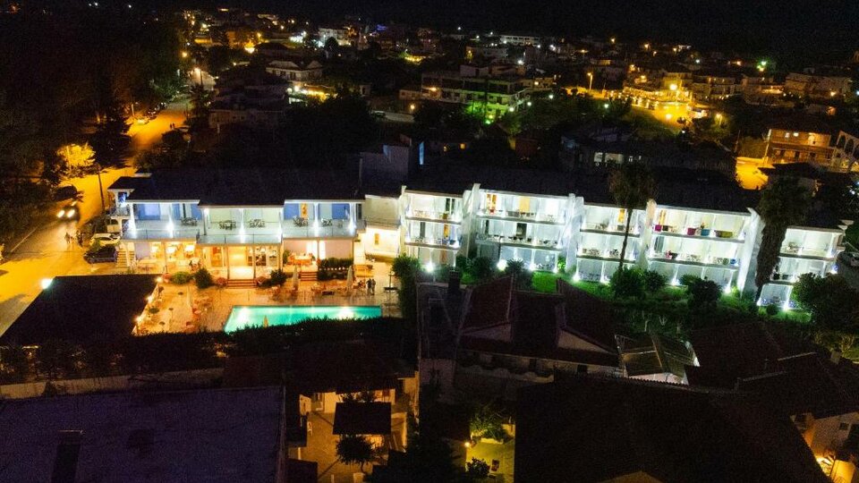 Хотелот Рај ( Paradise ) е хотел со 4 ѕвезди, изграден во 2002 година, со 42 пространи соби, 27 двокреветни и 15 трокреветни. На приземјето на хотелот се наоѓаат рецепцијата, лобито, главниот ресторан и главниот бар. Исто така, хотелските терени вклучуваат тераса, 100 кв.м. базен. прибл., бар-базен, таверна и зелени површини. Можете исто така да уживате во пливањето непосредно пред нашиот хотел, на плажа во нашиот специјално дизајниран простор.
